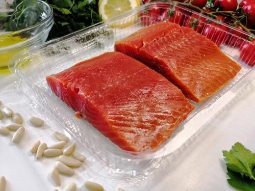 Le nostre porzioni di salmone, disponibili con o senza pelle, offrono praticità e precisione in cucina. Con varie dimensioni e pesi disponibili, sono perfetti per qualsiasi piatto. Scegliete tra confezioni sfuse da 5-20 kg, pezzi confezionati singolarmente sottovuoto o confezioni al dettaglio come sacchetti da 500-1000 grammi.